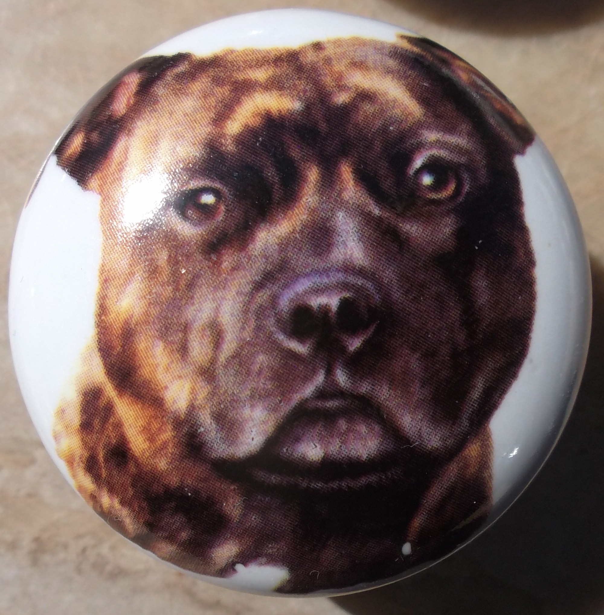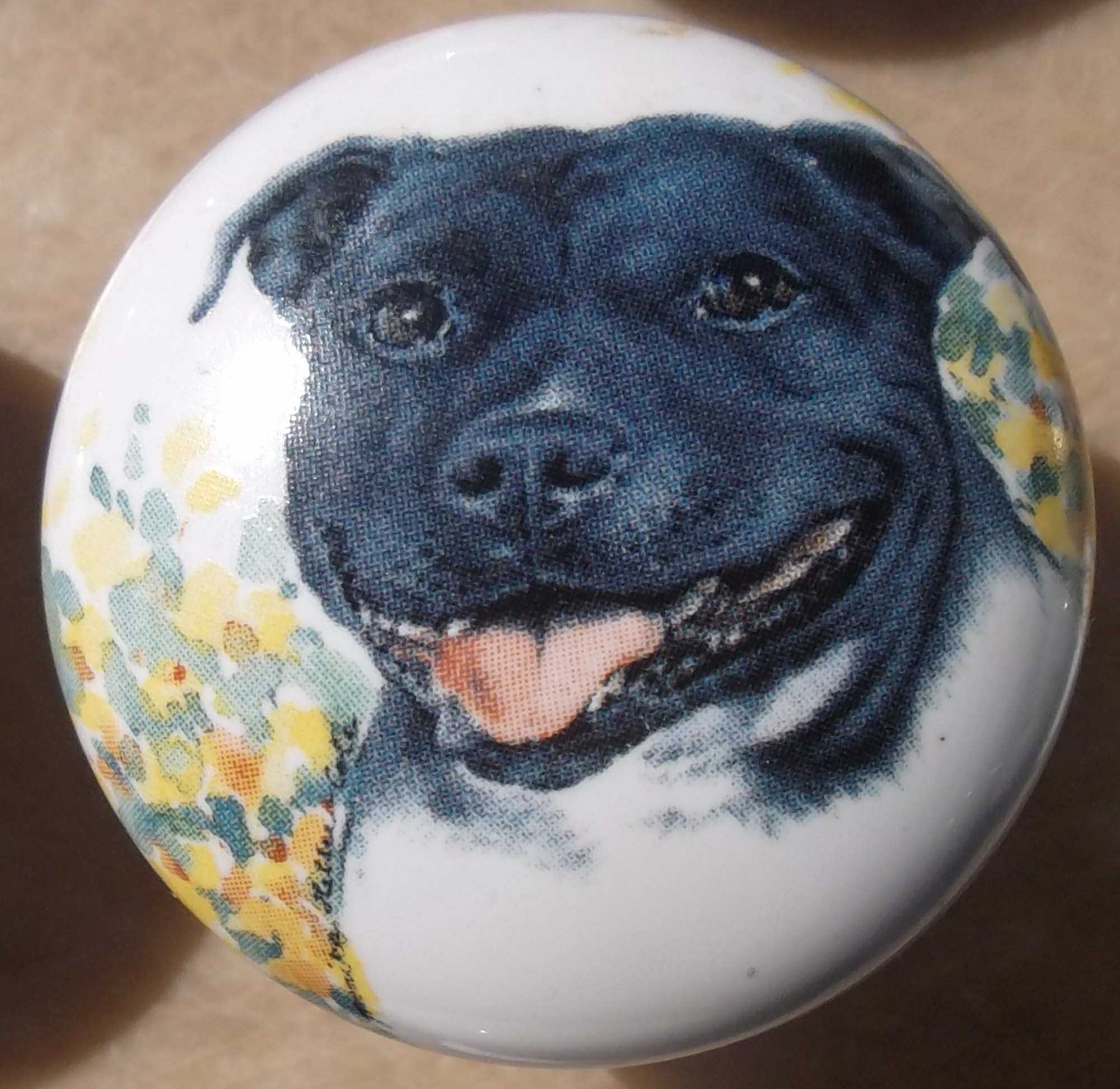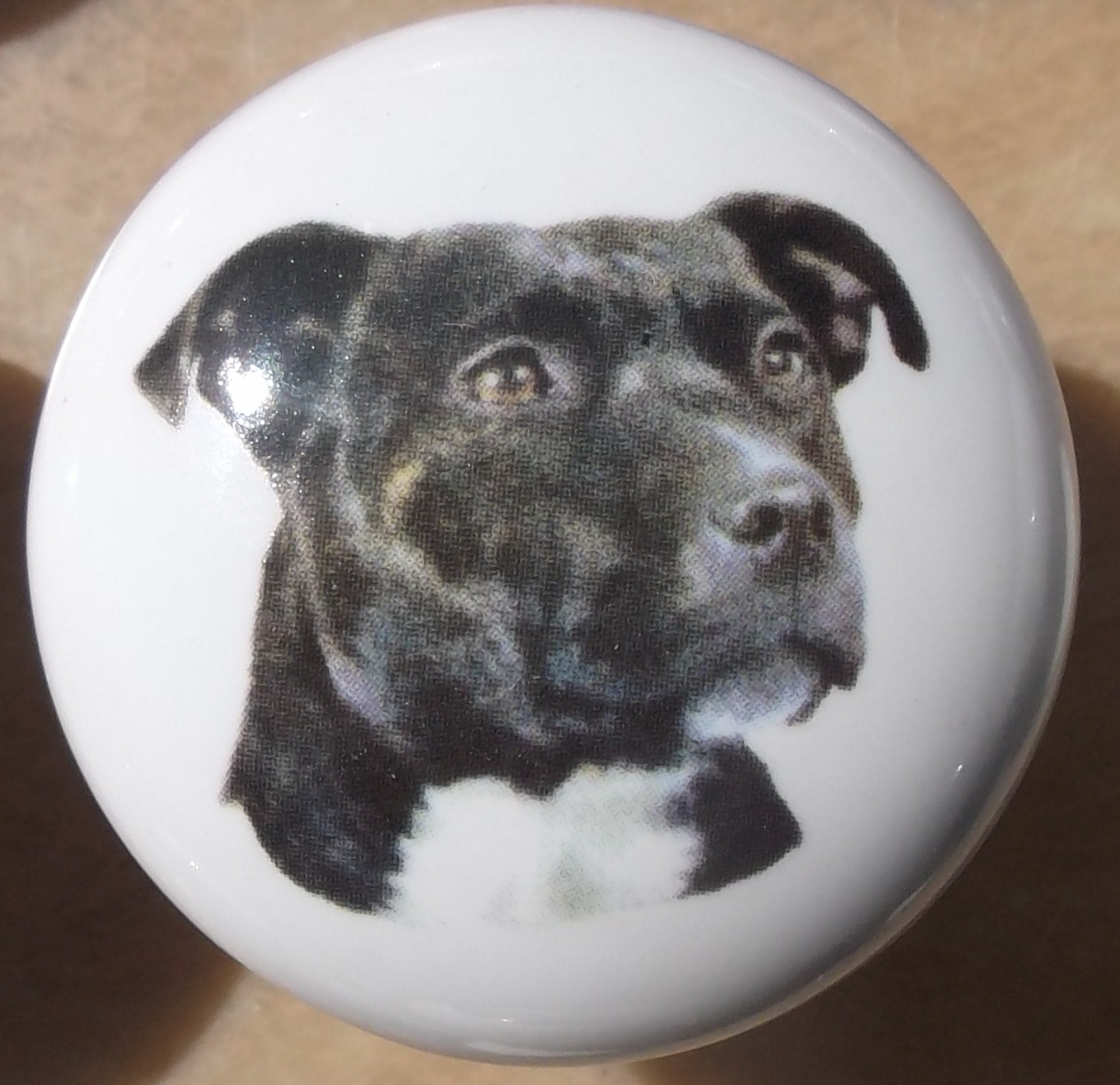 Cabinet Knob Staffordshire Terrier Brindle Lg. $5.50 |