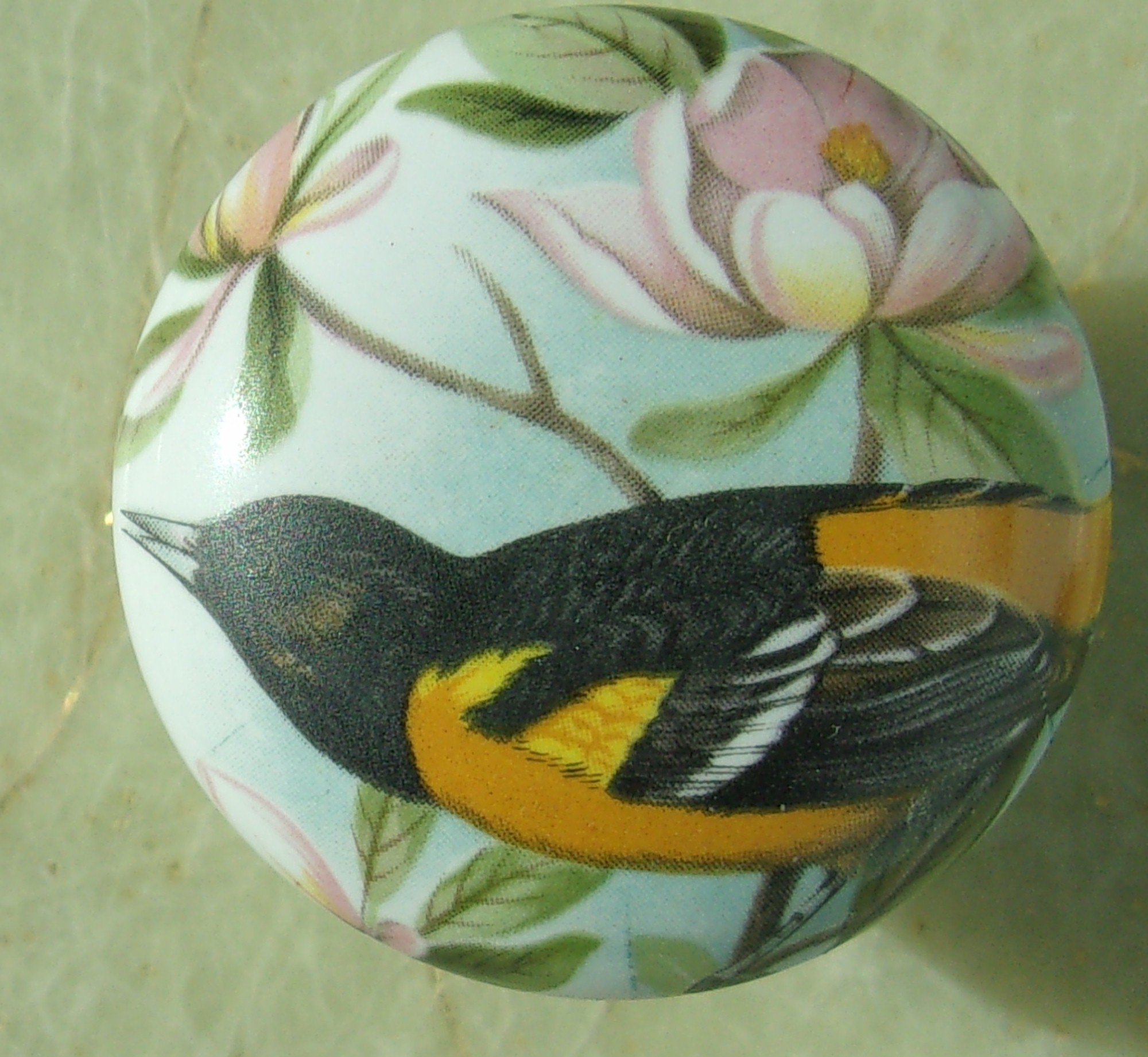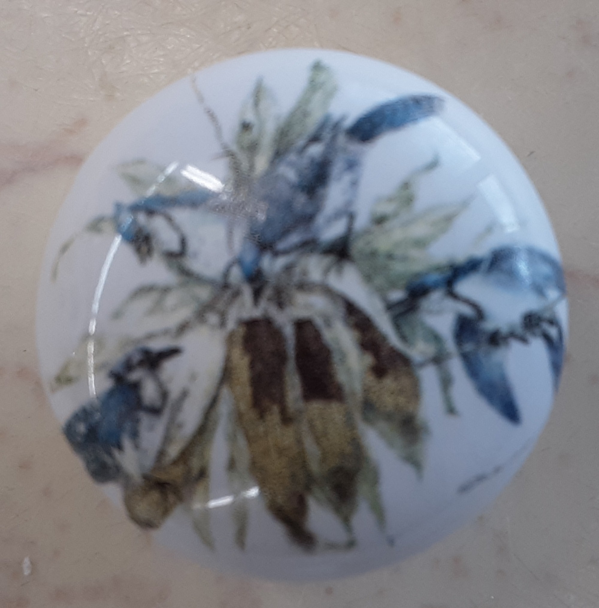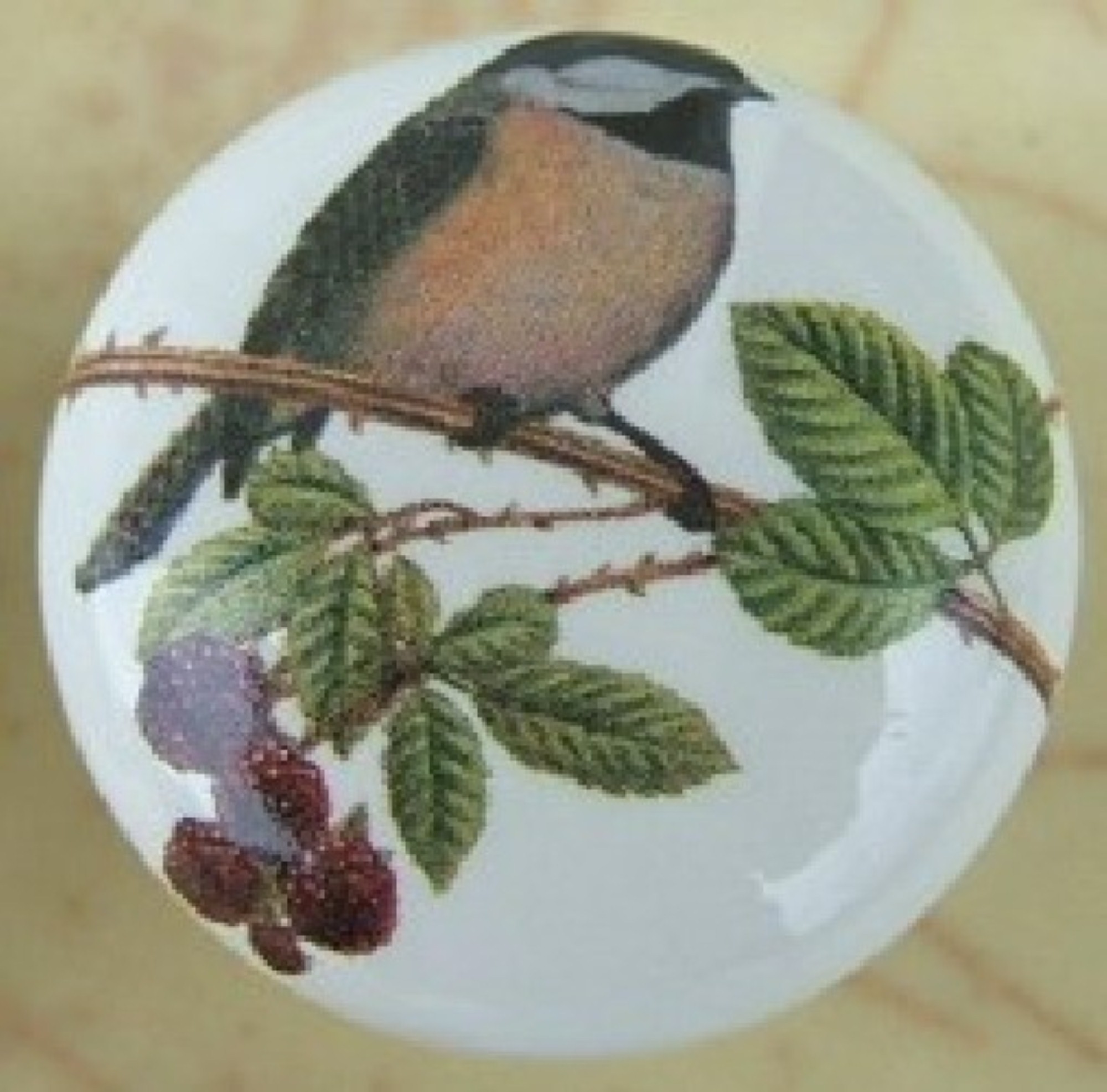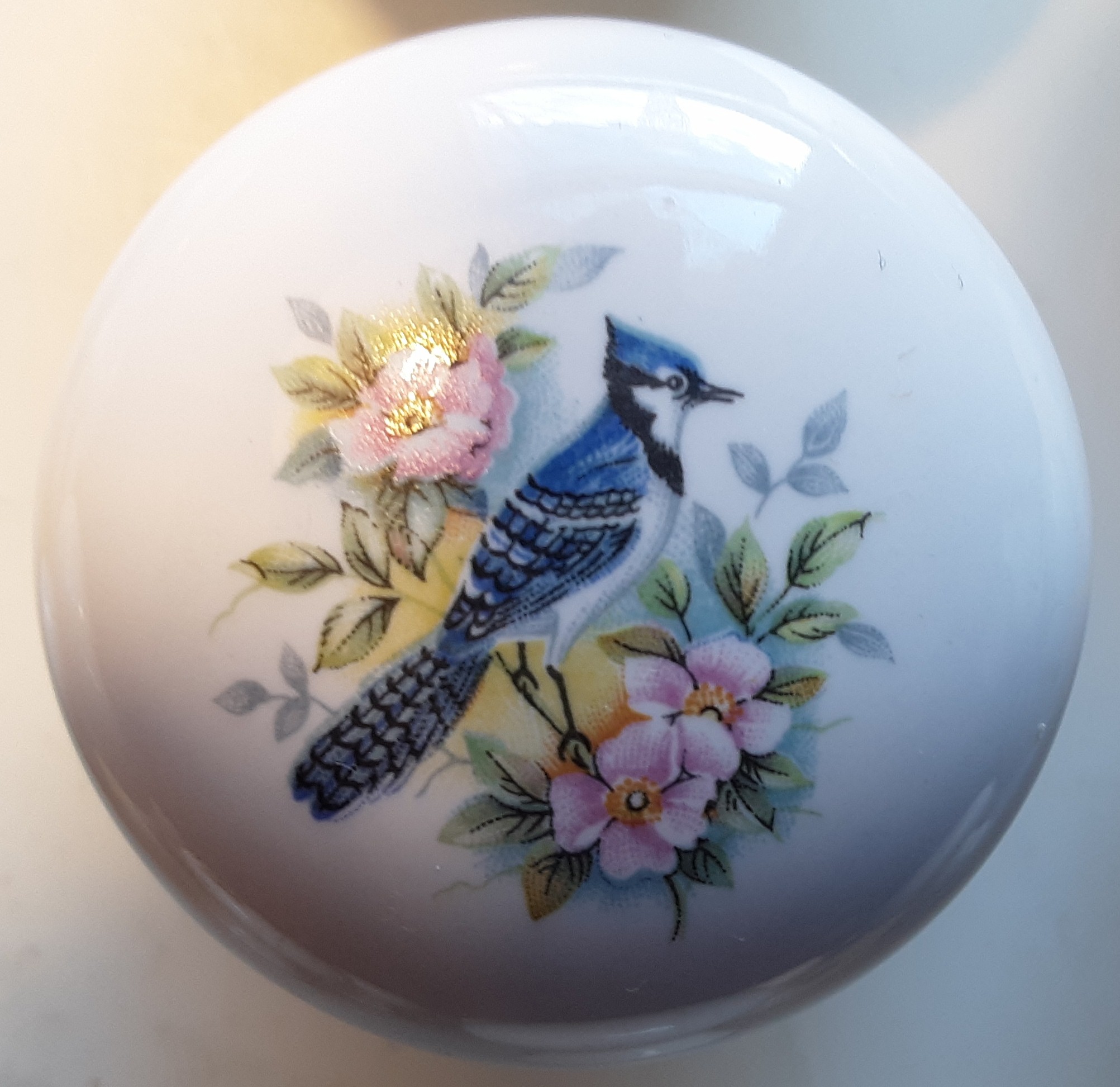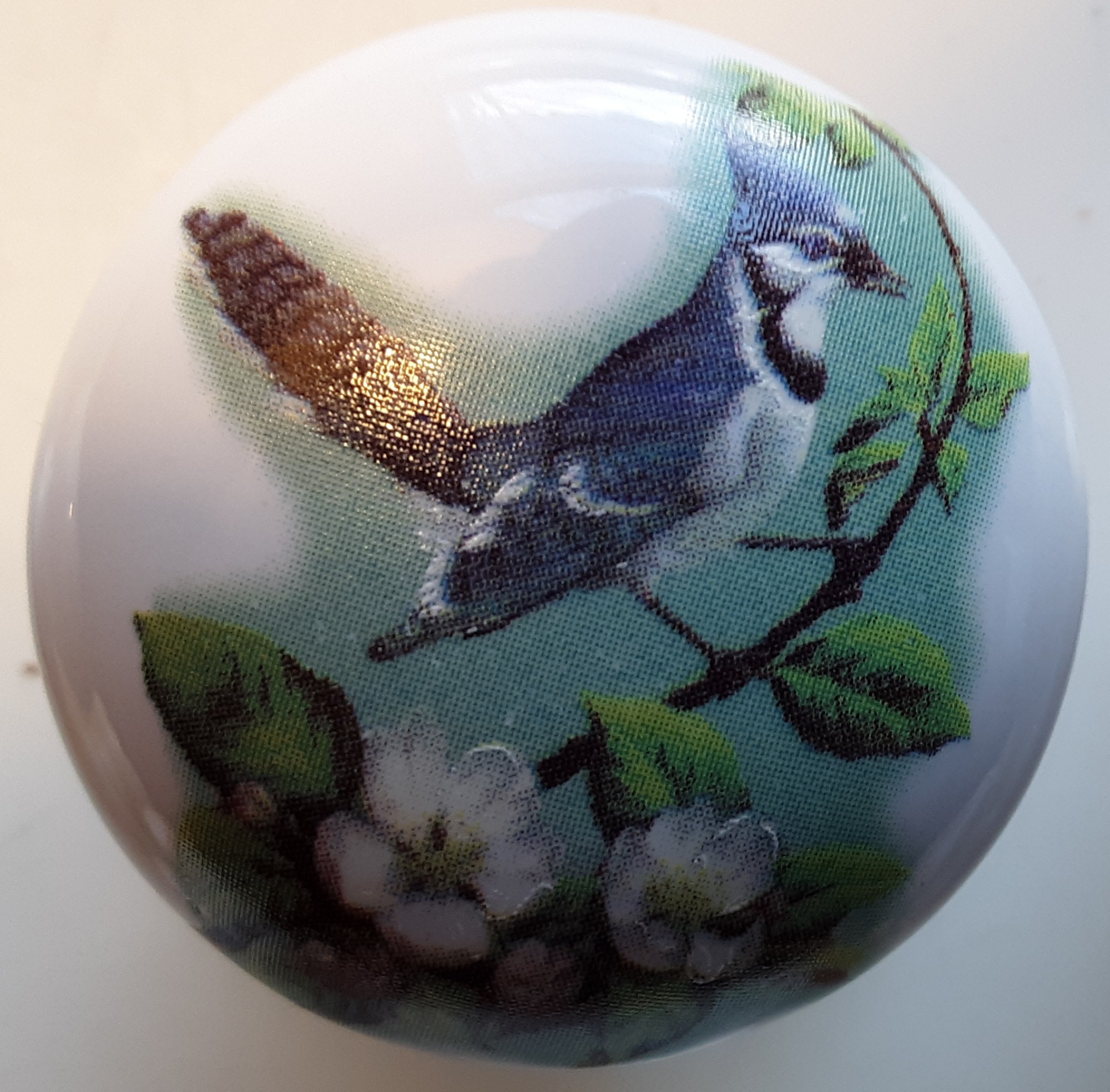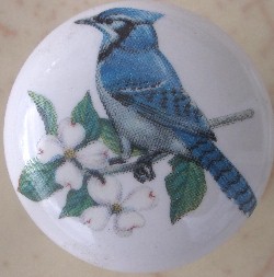 Ceramic Cabinet knobs with Domestic birds humming bird robin blue jay bluejay cardinal sparrows chickadees blue bird |