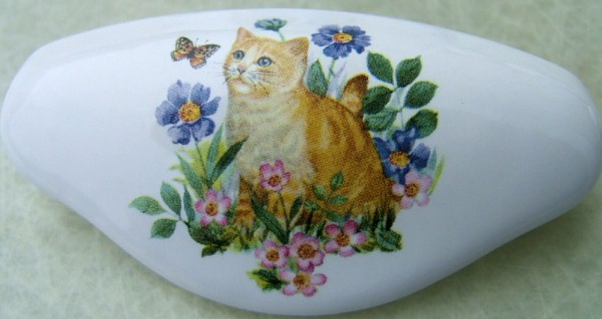 Drawer Pull Orange Tabby in Flowers $8.35 |